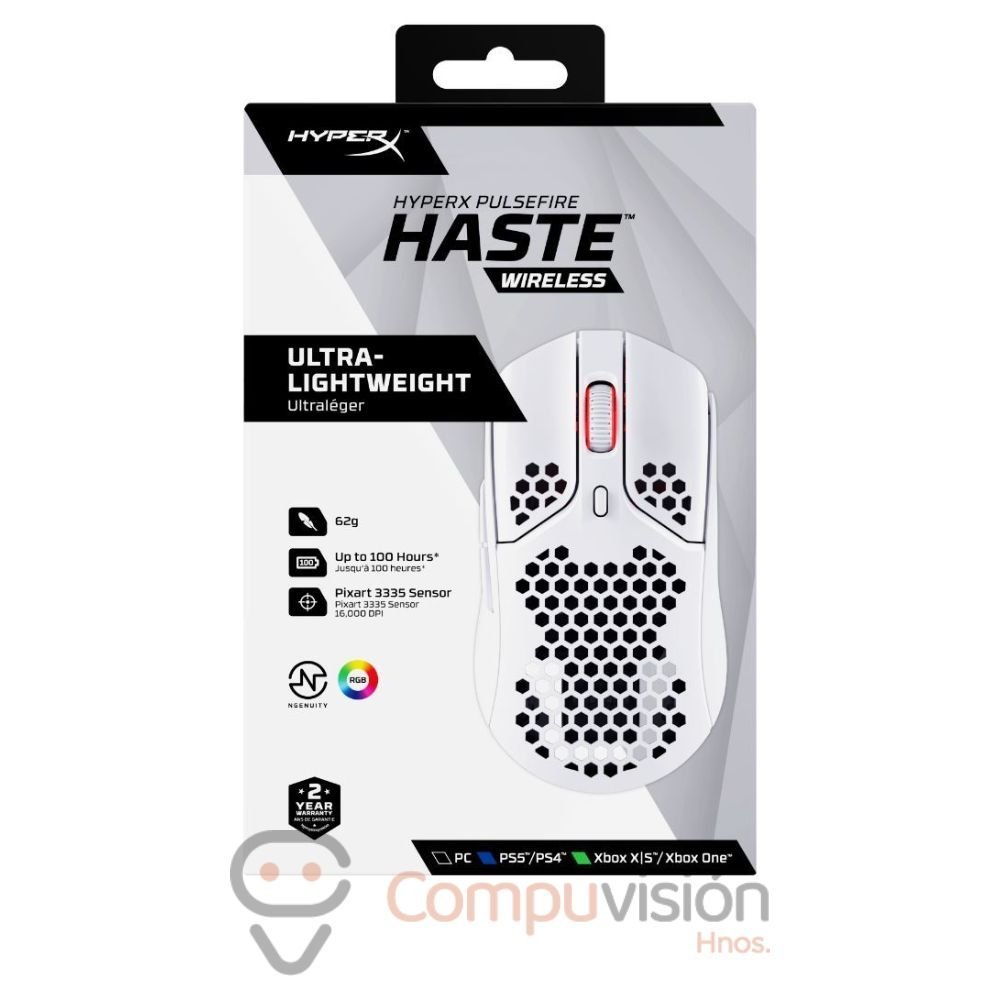MOUSE HYPERX PULSEFIRE HASTE WHITE WIRELESS 16.000 DPI 6 BOTONES 1MS