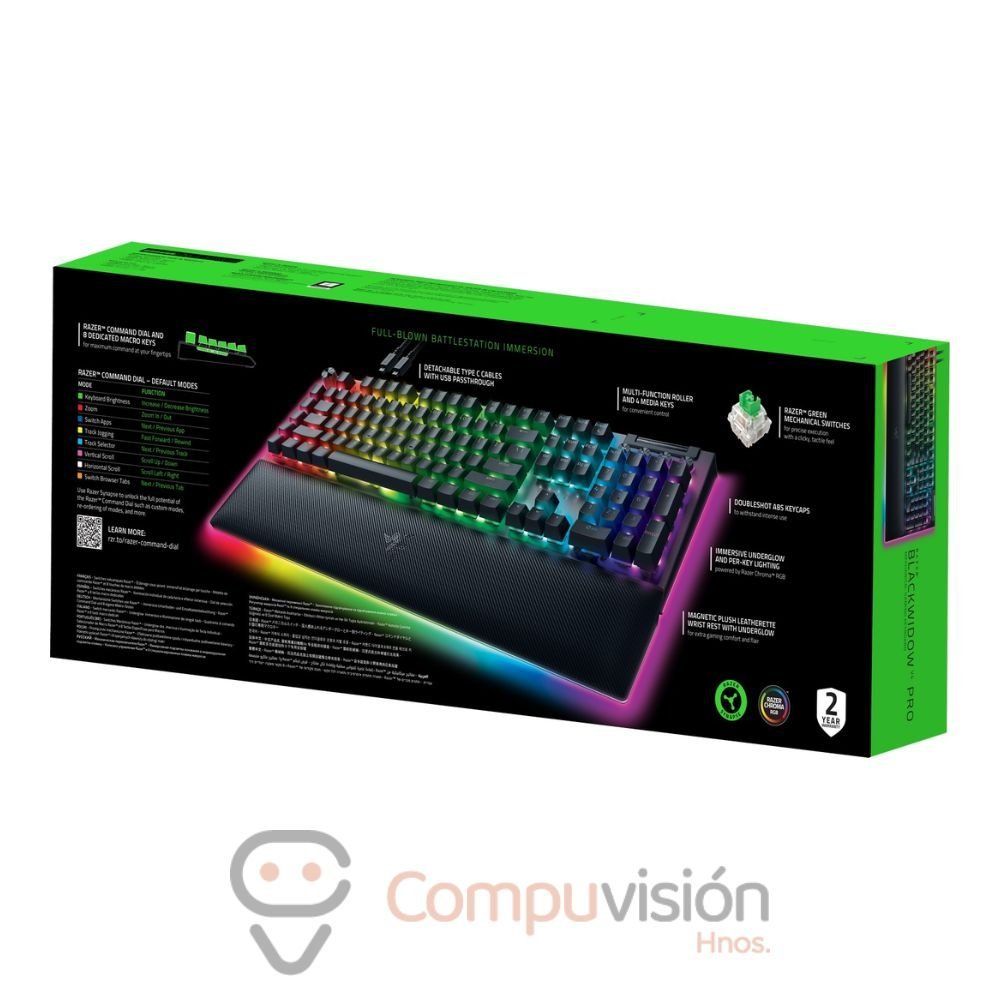 • Teclado Razer BlackWidow V4 PRO Mecanico USB-C Switch Green US 3 zonas Chroma Black